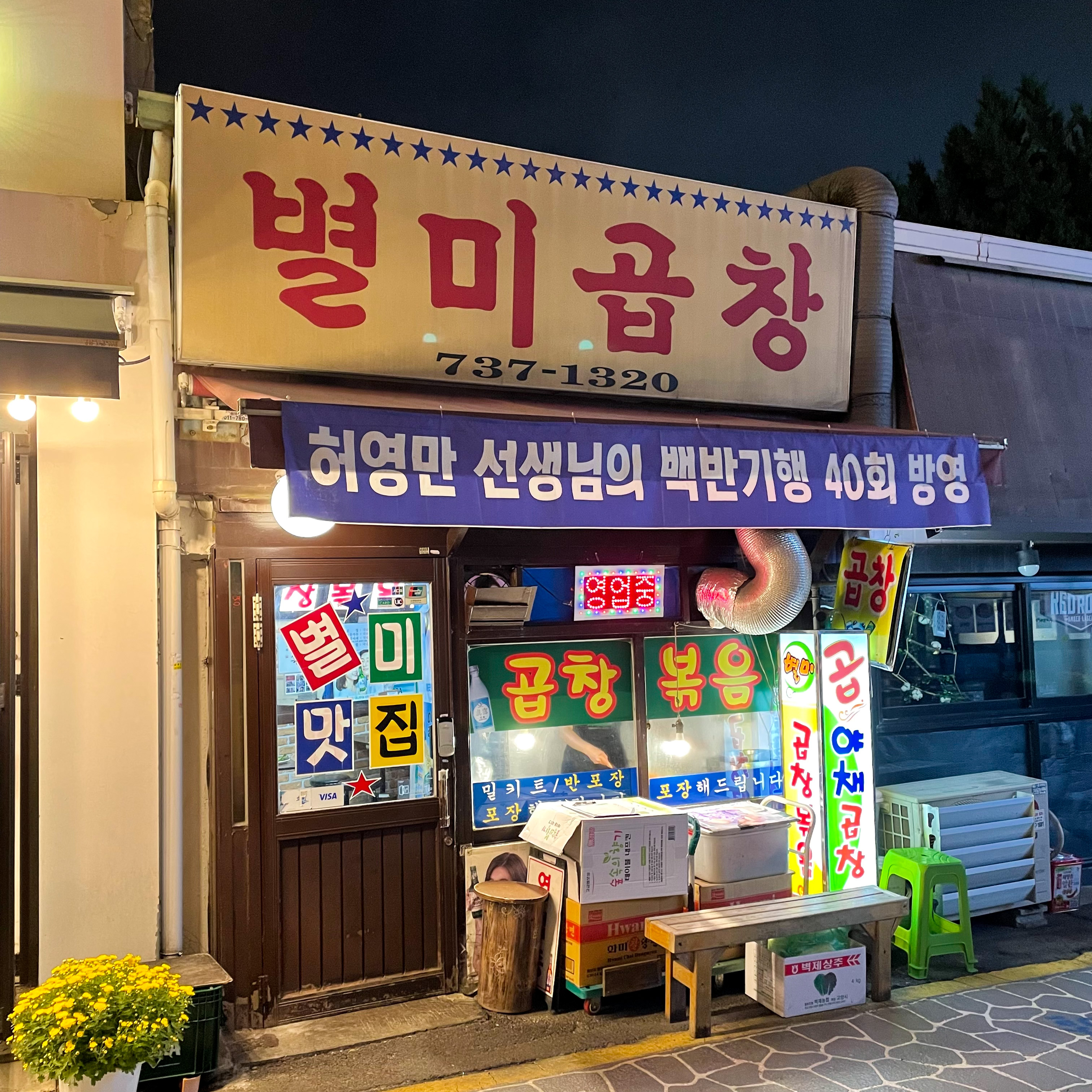 빈티지한 레트로 느낌의 야채 곱창 맛집 별미 곱창.